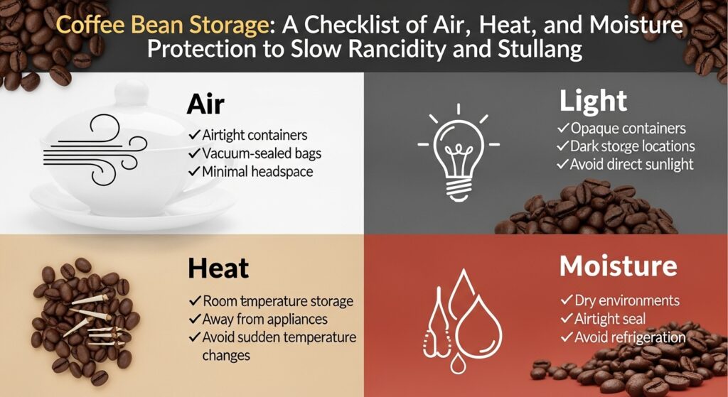 ☕ 원두 보관법: 산패·스테일링을 늦추는 ‘공기·빛·열·습기’ 차단 체크리스트